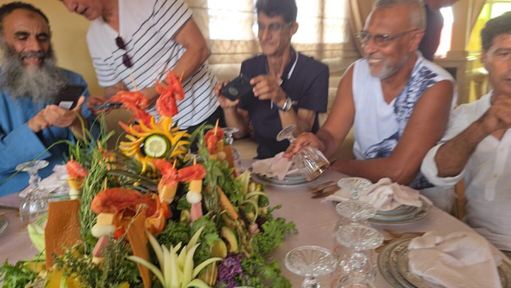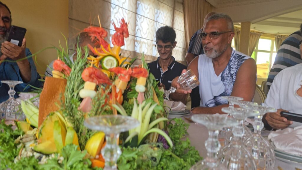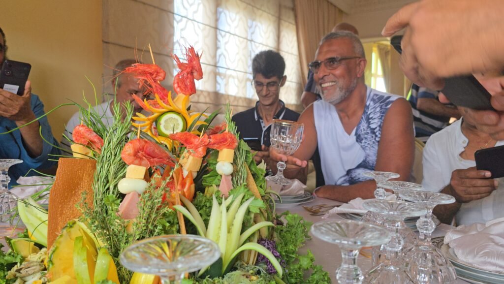 الموائد العامرة التي ازدانت بما لذ وطاب لم تكن مجرد أطباق طعام؛ بل كانت تعبيراً عن كرم الضيافة الذي يميز هذه العائلة الكريمة. كان كل طبق يحكي قصة حب واعتزاز، وكل كأس يرفع تعبيراً عن الامتنان، وكل ضحكة تشبه أغنية فرح لا تنسى.